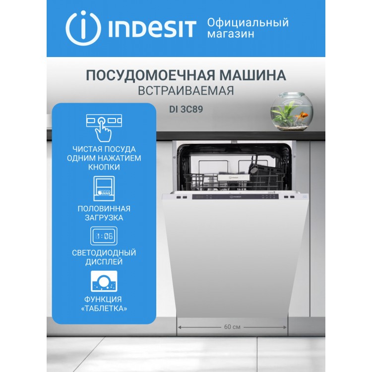 | Название | Встраиваемая посудомоечная машина Indesit DI 3C89, 60 см, белая, луч на полу |