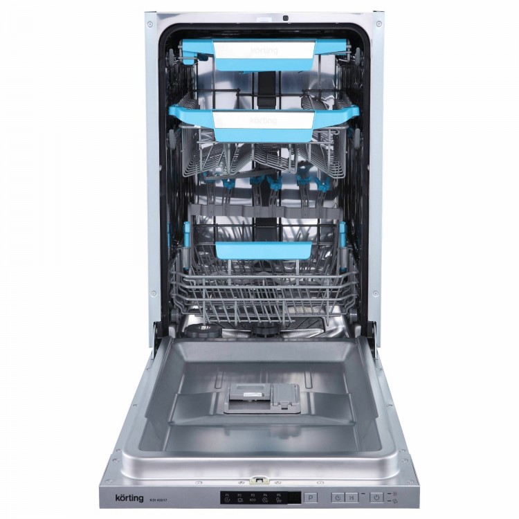 Большой выбор программ. Посудомоечная машина Korting KDI 45017 оснащена 5 программами мойки, среди которых автоматическая, быстрая, экономная, режим для стеклянной посуды и режим интенсивной мойки при полной загрузке.