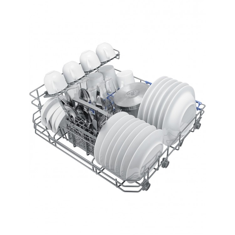 Таймер отсрочки позволяет начать мойку в удобное для вас время, а управление со смартфона делает процесс ещё более комфортным. В комплекте с машиной идёт корзина для столовых приборов.