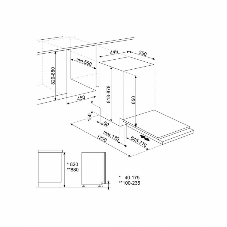 Название Встраиваемая посудомоечная машина Smeg ST4522IN с кондесационным типом сушки и инверторным двигателем; Бренд Smeg; Цвет товара Черный; Вместимость 9 комплектов; Вид Узкая (45 см); Тип установки Встраиваемая полностью; Класс энергопотребления E; Класс энергопотребления (2021) E; Класс мойки A; Класс сушки A; Управление Сенсорное; Инверторный двигатель Да; 3-й разбрызгиватель Нет; Высота 81.8 см; Ширина 44.6 см; Глубина 55 см; Вес 30.6 кг; Расход воды 9.9 л; Максимальная потребляемая мощность 1950 Вт; Энергопотребление за цикл 0.7 кВт·ч; Уровень шума при работе 47 дБ; Программы Автоматическая, быстрая, предварительное ополаскивание/замачивание, программа самоочистки, экономичная, Комбинированная; Количество программ мойки 6; Количество температурных режимов 2; Тип сушки Конденсационная; Время мойки при обычной программе 240 мин; Третий уровень загрузки Нет; Особенности Дисплей, Автоматическое открывание двери, Внутреннее освещение, Отсрочка запуска, Поддон для столовых приборов, Регулировка высоты корзин, Таймер; Минимальное время отсрочки запуска 3 ч; Максимальное время отсрочки запуска 3 ч; Макс. температура воды на входе 60 °C; Индикация работы Звуковая; Индикаторы Наличия ополаскивателя, наличия соли, Ход программ; Безопасность Защита от протечек; Тип защиты от протечек Полная; В комплекте Корзина для столовых приборов; Дополнительная информация Эргономичные корзины, идеально для маленьких кухонь, петли flexifit, программа самоочистки, внутренняя камера их нерж.стали, минипрограмма - 50 минут, цвет панели управления - черный, размер ниши (в*ш*г) - 82*45*55; Работает в системе Умный дом Нет; Гарантийный срок 1 г; Размер (ДхШхВ), см 55х44.6х81.8; Цвет серебристый;