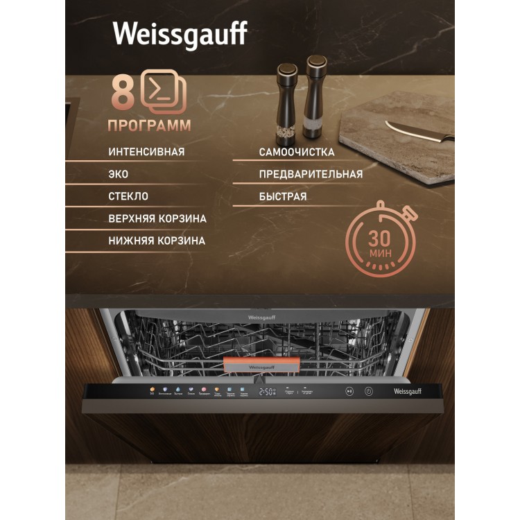 Вроде посудомоечная машина хорошая, только установили, еще особо не пользовались, подключить было легко. В комплекте для фасадов был двухсторонний скотч