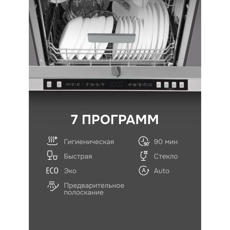 | Программы | Автоматическая, гигиеническая, предварительное ополаскивание/замачивание, режим половинной загрузки, стандартная, стекло, экономичная |
