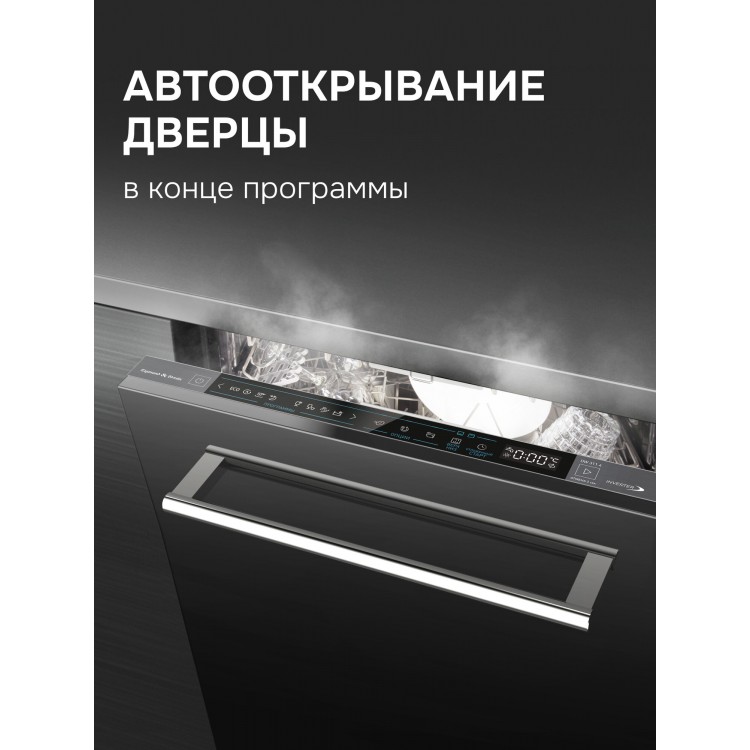 Благодаря конденсационной сушке ваша посуда будет сухой и блестящей. Машина расходует всего 8 литров воды за цикл, а её максимальная потребляемая мощность составляет 2100 Вт.