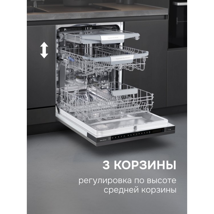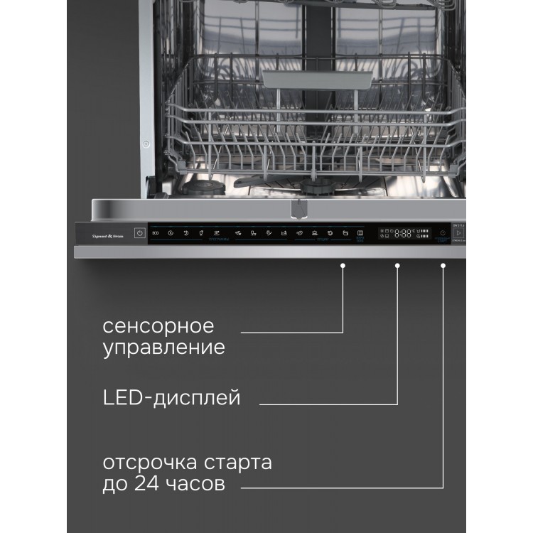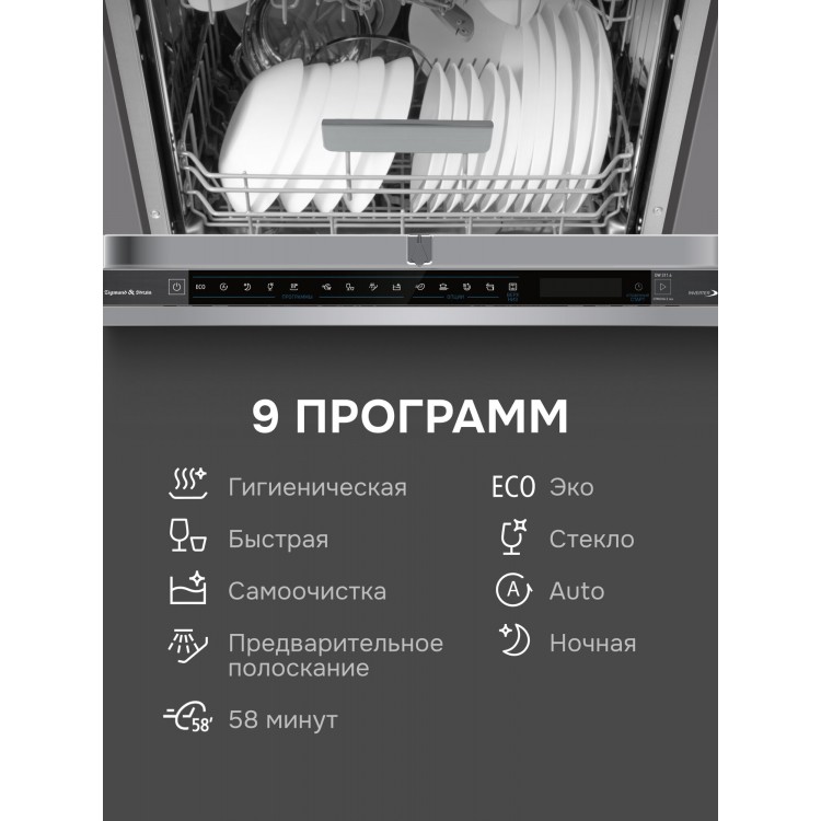 Сенсорное управление и 9 программ мойки, включая гигиеническую и программу самоочистки, позволяют выбрать оптимальный режим для любых загрязнений. Конденсационный тип сушки обеспечивает высокое качество сушки посуды.