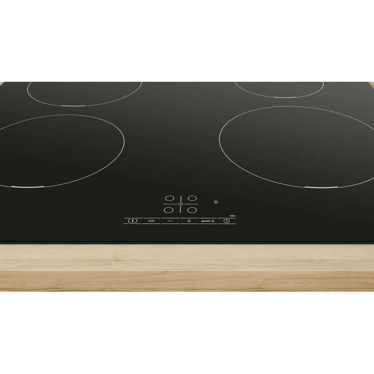Название Варочная панель Bosch PUE 611BB5D 590x520x0 Черный; Бренд BOSCH; Цвет черный; Материал панели стеклокерамика; Установка независимая; Тип варочной поверхности индукционная; Ширина 59.2 см; Высота 5.1 см; Глубина 52.2 см; Ширина для встраивания 56 см; Глубина для встраивания 49 см; Максимальная потребляемая мощность 7.2 кВт; Номинальная мощность 4.6 кВт; Общее количество конфорок 4; Конфорок электрических 4; Специальные конфорки Hi Light, двухконтурная, индукционная, экспресс-конфорка, электроконфорка; Электроконфорок 4; Конфорок индукционных 4; Минимальный диаметр конфорки 14.5 см; Максимальный диаметр конфорки 21 см; Размеры конфорок левая ближняя 180 мм левая дальняя 180 мм правая ближняя 210 мм правая дальняя 145 мм; Переключатели сенсорные, спереди, электронные; Тип сенсорного управления кнопочное; Расположение панели управления спереди; Электроподжиг нет; Тип электроподжига нет; Газ-контроль конфорок нет; Особенности блокировка от детей, защита от детей, индикаторы остаточного тепла; Управление со смартфона нет; Функции автоматика закипания, кратковременная пауза, поддержание тепла, распознавание наличия посуды, распознавание размера посуды, таймер, функция Booster, функция ReStart, Booster, Быстрый нагрев; Тип таймера с отключением; Безопасность защитное отключение конфорок, индикатор остаточного тепла, кнопка блокировки панели; Цвет рамки нет; Габариты транспортной упаковки 5.10х59.20х52.20 см; Вес в транспортной упаковке 11.5 кг; Срок службы 5 лет; Гарантийный срок 12 мес., Гарантия СЦ производителя; Цвет черный;