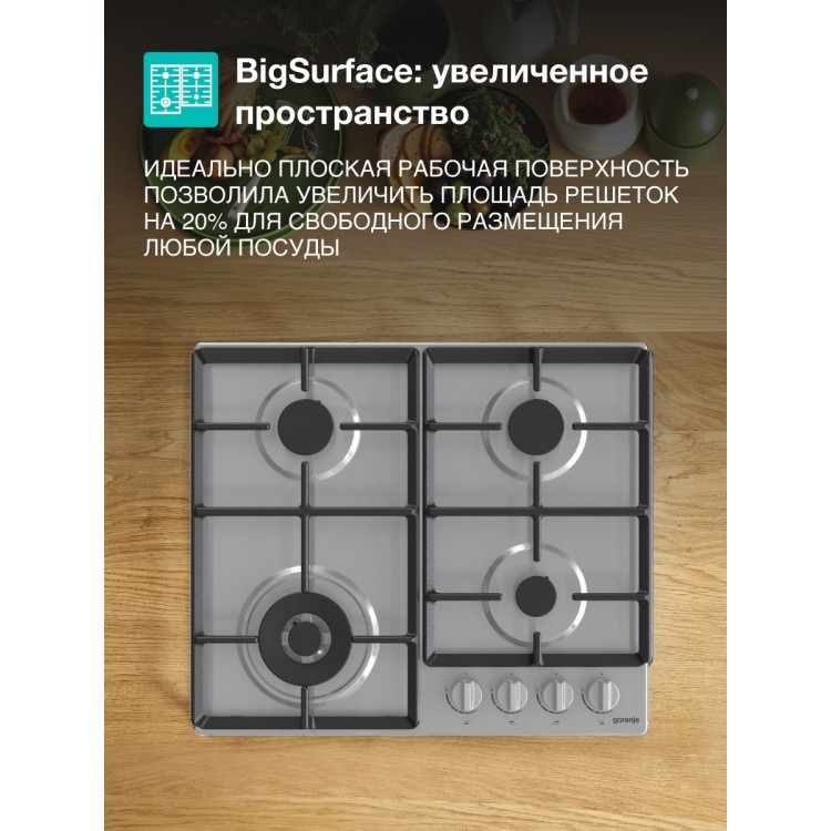 Выбирала имеено с таким покрытием, которое отличается от стекла. Не видно разводов, царапин. Очень красиво смотрится. Ручки удобные и стильные. Наличие конфорки WOK считаю плюсом! В комплекте все, что нужно для установки. Приехала целая и хорошо упакована.