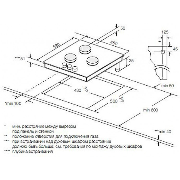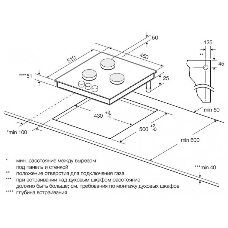 | Глубина для встраивания | 51 см |