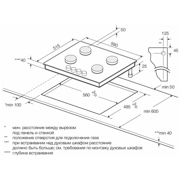 | Глубина для встраивания | 48.5 см |