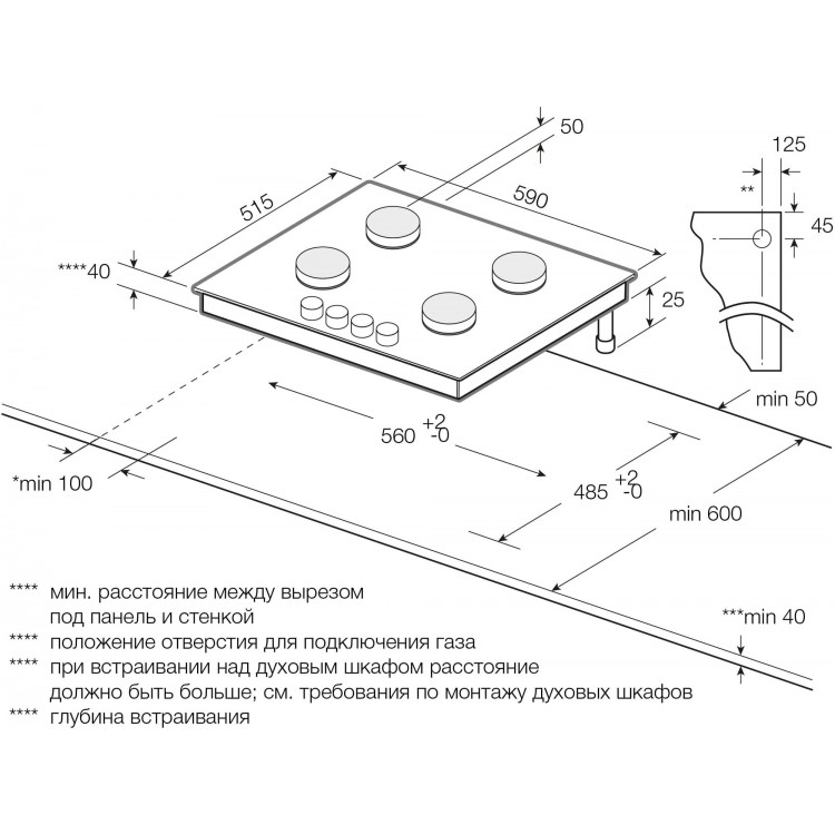 | Глубина для встраивания | 48.5 см |