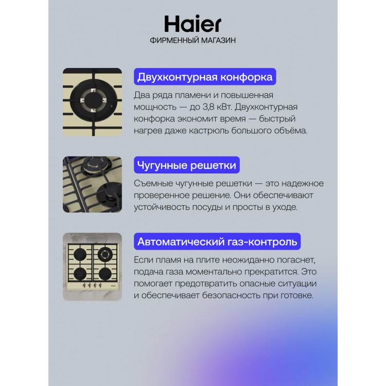 | Название | Варочная панель Haier Antique Line HHX-M64ATQBC, слоновая кость |