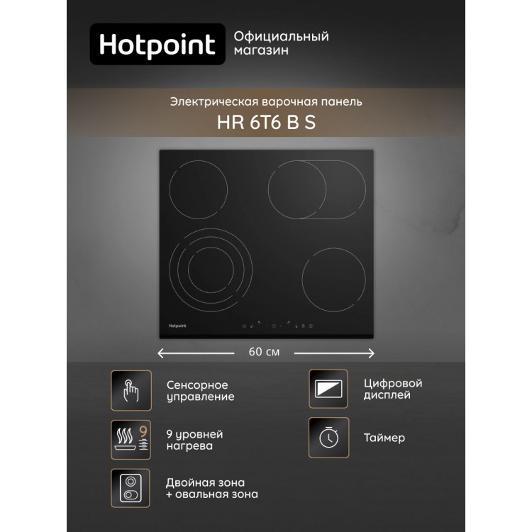| Название | Электрическая варочная поверхность HR 6T6 B S, 60 см, черный |
