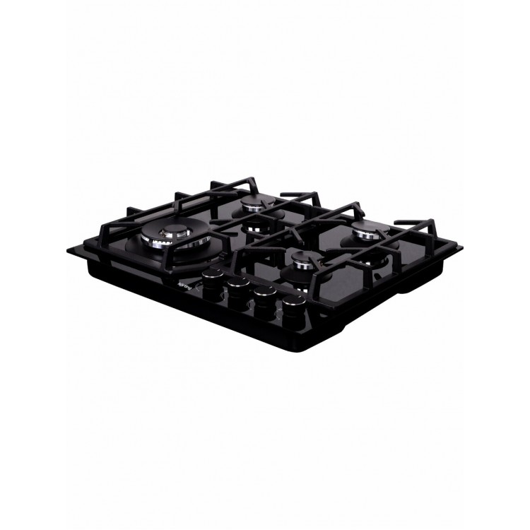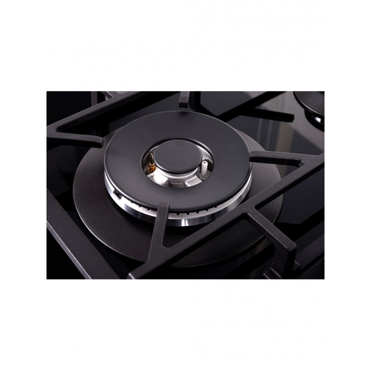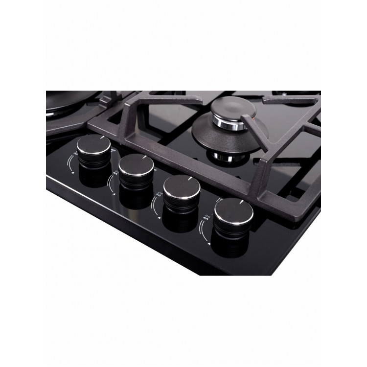 Чугунные решётки гарантируют надёжность и долговечность, а поворотные переключатели спереди удобны в использовании. Автоматический электроподжиг и газ-контроль конфорок делают эксплуатацию безопасной. Панель также поддерживает работу от газового баллона, что может быть удобным решением для определённых условий.