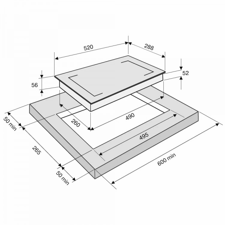 | Размеры конфорок | Диаметр и мощность конфорок, мм/кВт : Дальняя: 180 мм * 1,9/2,2 кВт; Ближняя: 180 мм * 1,3/1,5 кВт; Flex зона: 180х300 * 3/3,6 кВт |