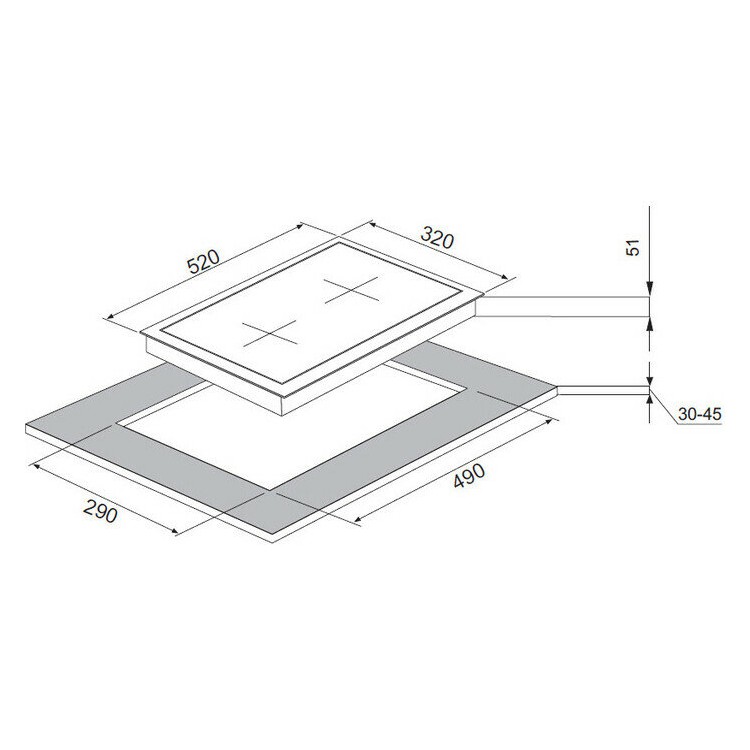 Панель имеет две конфорки с максимальной потребляемой мощностью 3,5 кВт и номинальной мощностью 3,5 кВт, что позволяет готовить несколько блюд одновременно.