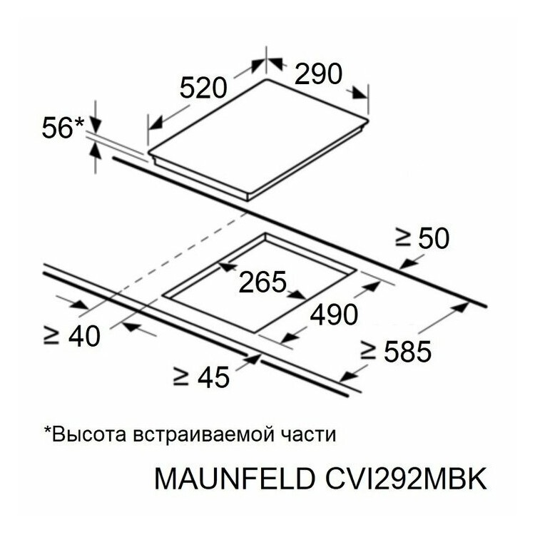 Название Индукционная варочная панель Maunfeld CVI292MBKBR; Размеры 29x52 см; Бренд MAUNFELD; Цвет товара Черный; Дизайн ДОМИНО Да; Материал рабочей поверхности Стеклокерамика; Рамка Нет; Установка Независимая; Тип варочной поверхности Индукционная; Ширина 29 см; Высота 5.7 см; Глубина 52 см; Ширина для встраивания 26.5 см; Глубина для встраивания 49 см; Максимальная потребляемая мощность 3.2 кВт; Количество конфорок 2; Специальные конфорки Индукционная; Конфорок индукционных 2; Минимальный диаметр конфорки 16 см; Максимальный диаметр конфорки 18 см; Размеры конфорок 1x160, 1x180 мм; Переключатели Поворотные, сенсорные, поворотные/сенсорные, спереди; Тип сенсорного управления Слайдерное; Расположение панели управления Спереди; Особенности Индикаторы остаточного тепла; Функции Кратковременная пауза, поддержание тепла, распознавание наличия посуды, распознавание размера посуды, таймер; Тип таймера Звуковой с отключением; Безопасность Защитное отключение конфорок, индикатор остаточного тепла, Автоотключение, распознавание наличия посуды; Цвет рамки Матовое золото; Дополнительная информация Контроль каждого этапа приготовления. Легко! Регулируемый таймер с отключением поможет без хлопот следить за приготовлением. Его можно установить на время до 99 минут, варочная панель сама прекратит нагрев; Габариты транспортной упаковки 13x36x57.5; Вес в килограммах с учетом упаковки 4.7; Гарантийный срок 1 г; Цвет черный;