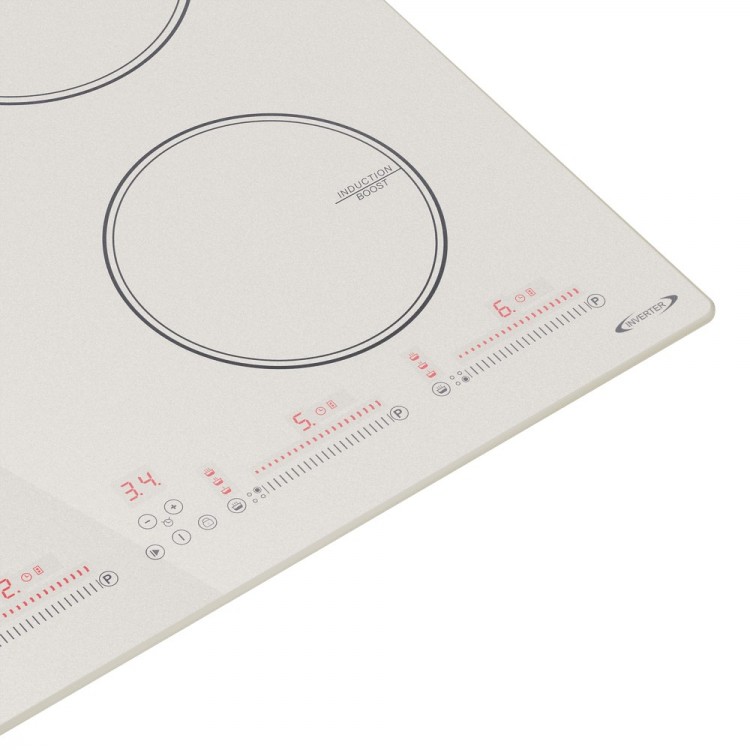 Эта варочная панель имеет стильный белый цвет и выполнена из прочной стеклокерамики. Она оснащена четырьмя конфорками, включая индукционные и экспресс-конфорки, что позволяет готовить несколько блюд одновременно.