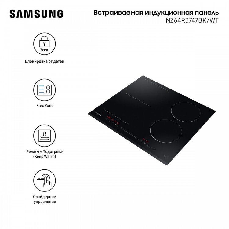 | Название | Индукционная панель Samsung NZ64R3747BK с Flex Zone и датчиком посуды |