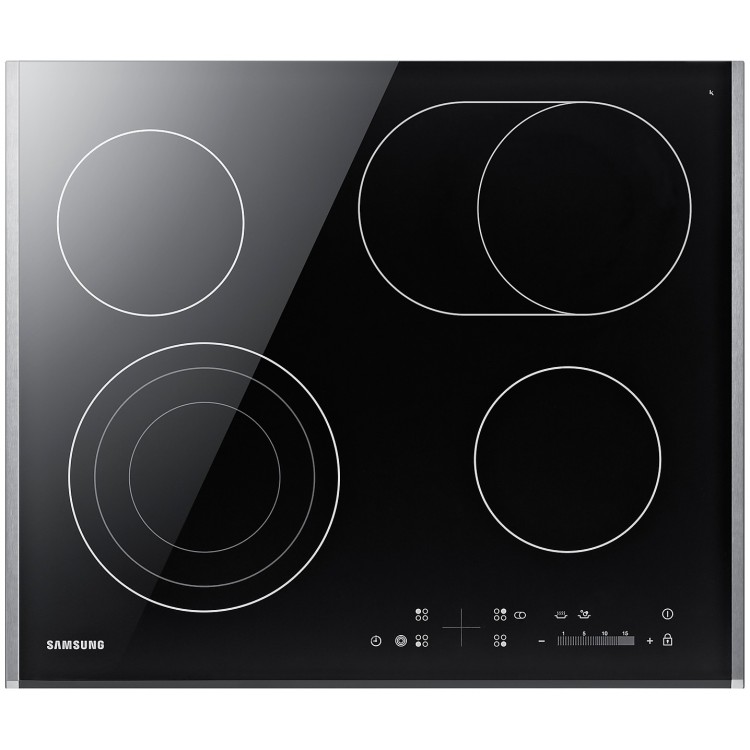 Название NZ64T3536DK с Slider & Direct Select; Бренд Samsung; Цвет товара черный; Линейка варочные панели; Материал рабочей поверхности стеклокерамика; Рамка да; Установка независимая; Тип варочной поверхности электрическая; Ширина 59 см; Высота 5.5 см; Глубина 50.5 см; Ширина для встраивания 56 см; Глубина для встраивания 49 см; Максимальная потребляемая мощность 7.1 кВт; Номинальная мощность 7.1 кВт; Количество конфорок 4; Конфорок электрических 4; Специальные конфорки Hi Light, Овальная зона нагрева; Конфорок Hi Light 4; Конфорок трехконтурных 1; Конфорок с овальной зоной нагрева 1; Необычные конфорки HiLight, Овальная зона нагрева; Минимальный диаметр конфорки 12 см; Максимальный диаметр конфорки 26.5 см; Переключатели сенсорные; Тип сенсорного управления слайдерное; Расположение панели управления спереди; Тип электроподжига автоматический; Функции автоматика закипания, поддержание тепла, распознавание наличия посуды, таймер, функция Booster, функция ReStart, Автоподогрев после приготовления, Расширение зоны нагрева, расширение зоны нагрева конфорок; Тип таймера звуковой с отключением; Безопасность защитное отключение конфорок, индикатор остаточного тепла, кнопка блокировки панели, Автоотключение, блокировка управления (защита от детей); Цвет рамки нерж. сталь; Дополнительная информация Цифровой дисплей, двухслойная рамка; Габариты транспортной упаковки 64x68x15 см; Вес в килограммах с учетом упаковки 9.9; Срок службы 7 лет; Гарантийный срок 1 г; Вес товара, г 8300; Индикация Выбранная мощность, Остаточное тепло; Комплектация Документация; Многоконтурные конфорки Трехконтурная; Размеры ниши для встраивания панели, мм 560х490; Размеры, мм 590x55x505; Тип управления Сенсорное; Цвет черный;