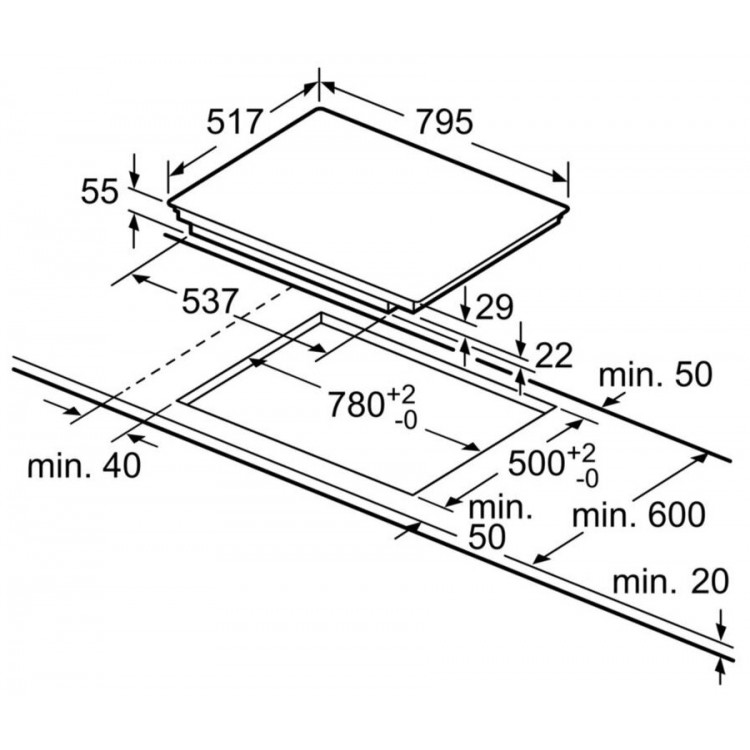 | Глубина для встраивания | 50 см |