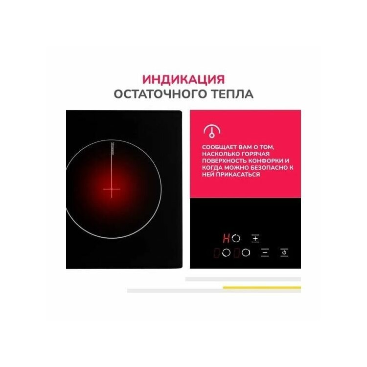 компактная, современный дизайн, с индикатором остаточного тепла, наличие защитного отключения