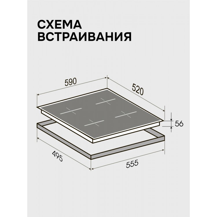 * 4 индукционные конфорки. Вы сможете одновременно готовить несколько блюд.