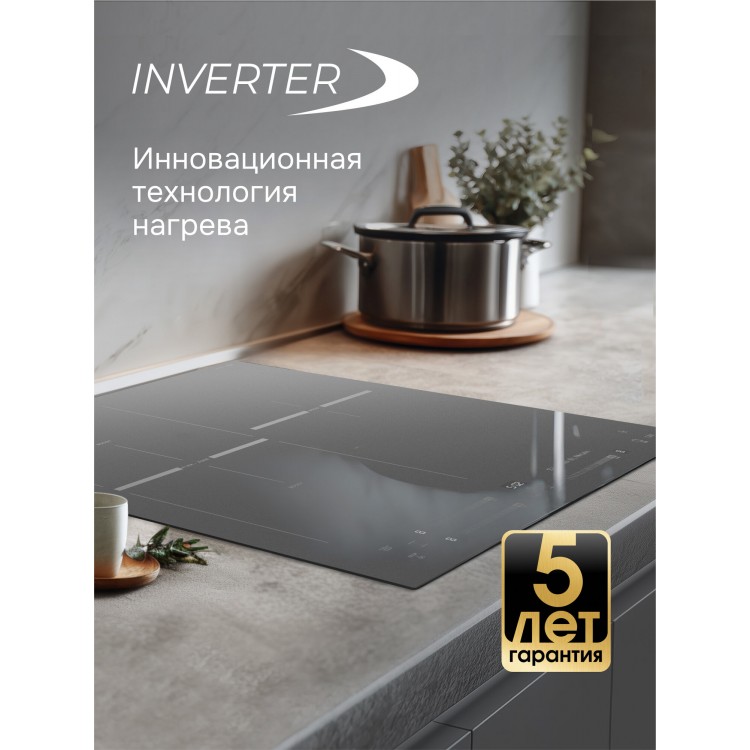 * Максимальная потребляемая мощность — 6,2 кВт. Панель обеспечивает быстрый и равномерный нагрев посуды.