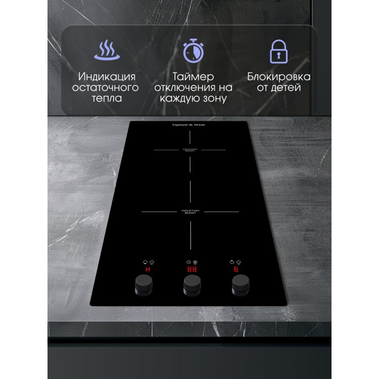 Нагрев происходит моментально . Интуитивно понятно управление с помощью слайдера. Минималистичный дизайн варочной панели.