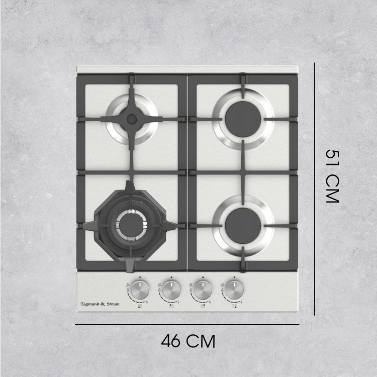| Название | Газовая варочная панель Zigmund & Shtain G 15.4 S 46 см, 4 конфорки электроподжиг газконтроль, серебристый |