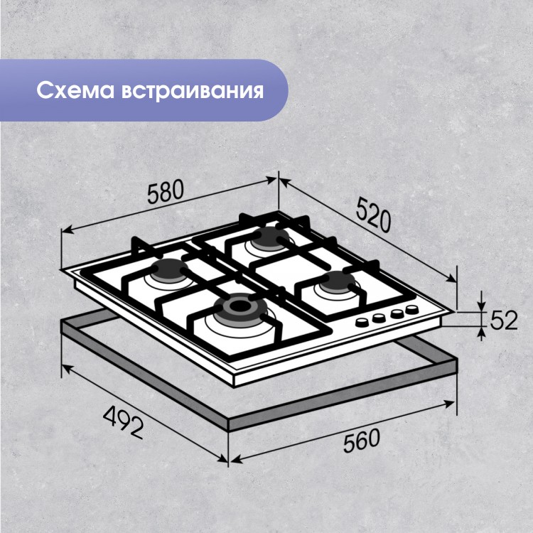 Название M 26.6 I; Бренд Zigmund & Shtain; Цвет бежевый; Линейка Sabaf; Материал панели закаленное стекло; Установка независимая; Тип варочной поверхности газовая; Ширина 58 см; Высота 4.5 см; Глубина 52 см; Ширина для встраивания 56 см; Глубина для встраивания 49 см; Общее количество конфорок 4; Конфорок газовых 4; Специальные конфорки Тройная корона, трехконтурная, WOK; Конфорок трехконтурных 1; Конфорок Тройная корона 1; Необычные конфорки конфорка WOK; Размеры конфорок подставка для WOK горелки; подставка для кофейника; переходник для газа G30/30mbar; Переключатели поворотные; Расположение панели управления спереди; Электроподжиг да; Тип электроподжига автоматический; Газ-контроль конфорок да; Особенности чугунные решетки, быстрый нагрев; Безопасность кнопка блокировки панели, Газконтроль; Габариты транспортной упаковки 64х16х58 см; Вес в транспортной упаковке 13.2 кг; Срок службы 5 лет; Гарантийный срок 3 г., Предоставляем расширенную гарантию на модель по схеме 3 + 2 (бесплатное сервисное обслуживание в течение трех лет и замена запчастей в течение двух); Цвет бежевый;