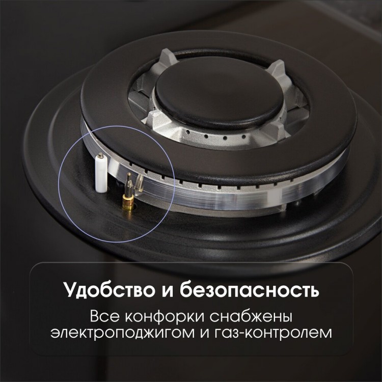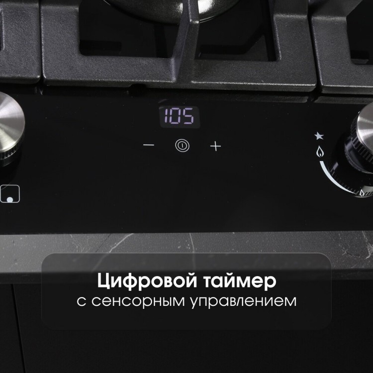Таймер с отключением на каждую горелку позволит вам не пропустить момент готовности вашего блюда, а мощность горелок 950 Вт, 1880 Вт, 2100 Вт и 3400 Вт позволит подобрать оптимальную температуру для каждой конфорки.