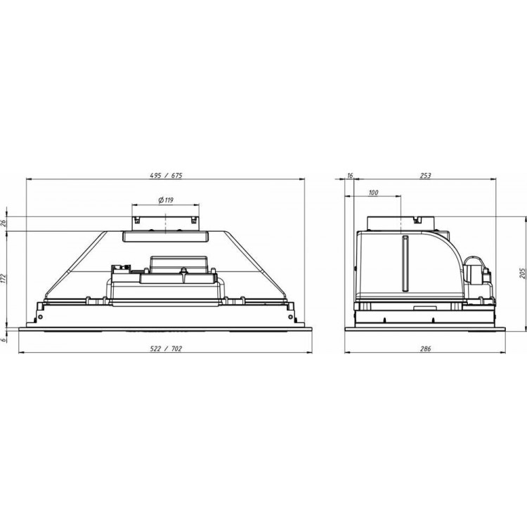 | Установка вытяжки | В шкаф |