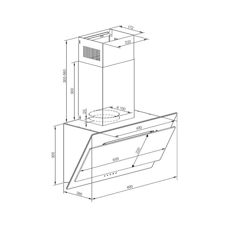 * Выдвижная конструкция. Удобное управление вытяжкой с помощью механического управления.