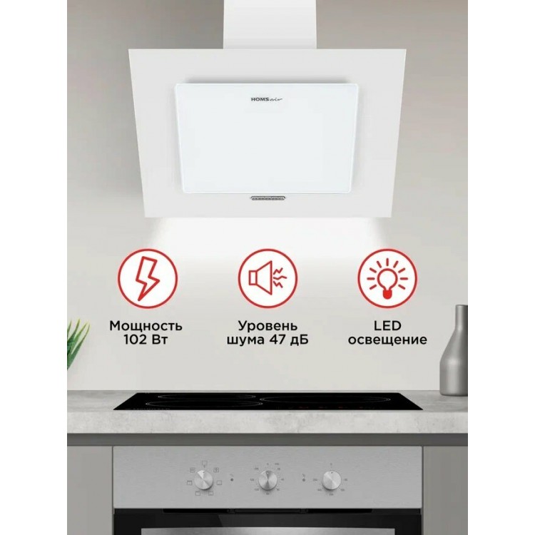 | Название | Вытяжка кухонная HOMSair BELL 60 белый, наклонная, 3 скорости, пристенная, 60 см |
