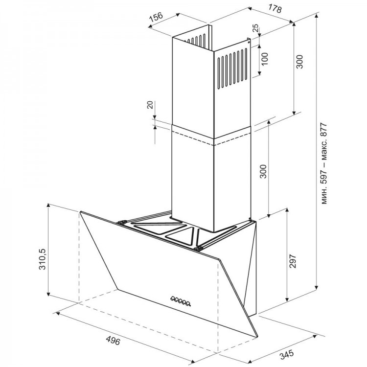 - Максимальный уровень шума 63 дБ: Низкий уровень шума делает работу вытяжки комфортной даже в условиях небольшой кухни.