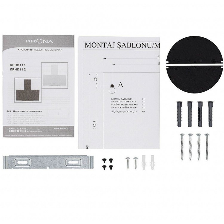 | Название | Вытяжка каминная наклонная KRONA POLLY 600 BLACK PB (стекло) |