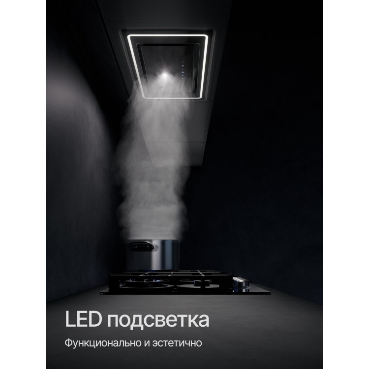 Тип управления — электронный, а тип освещения — светодиодный. Материал корпуса — металл и пластик, что обеспечивает долговечность и лёгкость в уходе. Окантовка и панели выполнены из металла, что придаёт вытяжке стильный и современный вид.