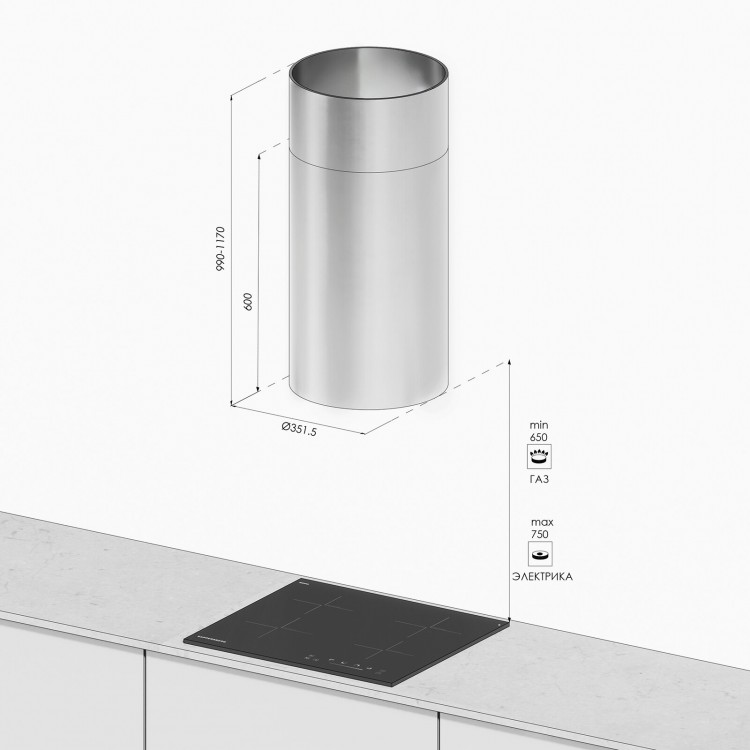 | Название | Вытяжка островная Kuppersberg TUBA 35 X (Модификация 2026) нержавеющая сталь |