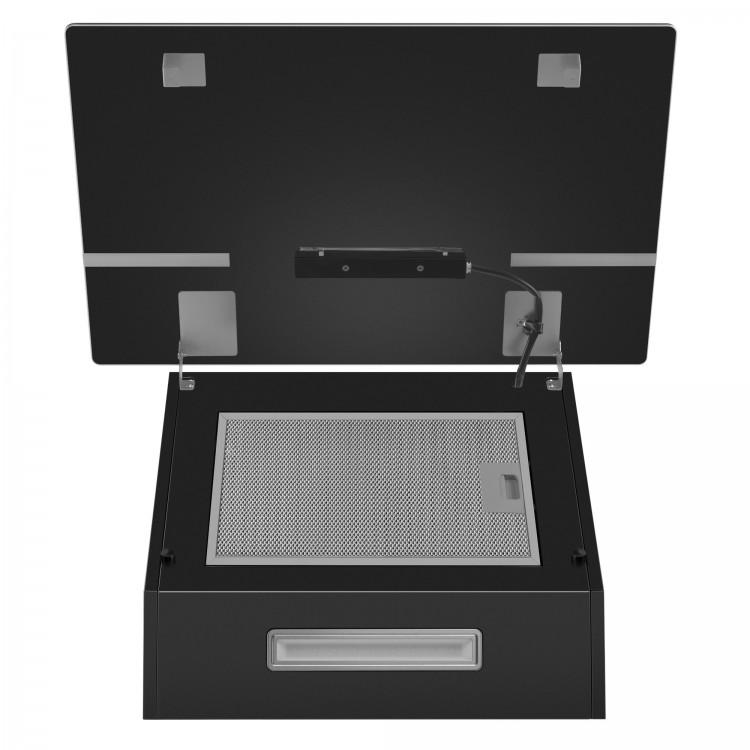 - Стильный дизайн. Чёрное стекло панели и окантовки вытяжки придаёт элегантности вашей кухне.