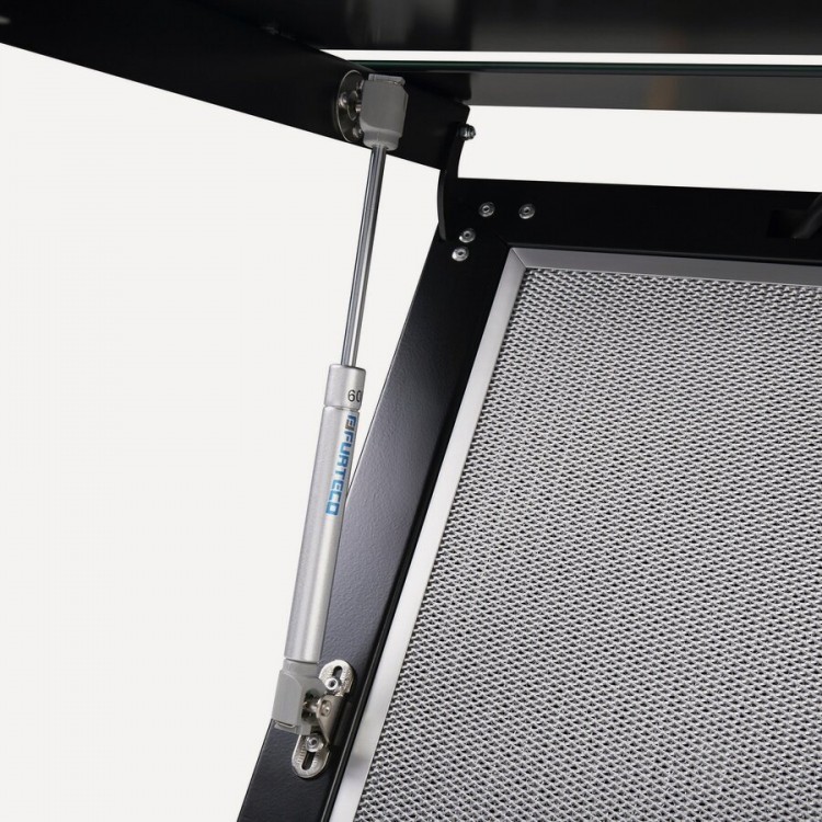 * Откидная панель с пневматической системой газ-лифт: облегчает доступ к фильтру и упрощает уход за вытяжкой.