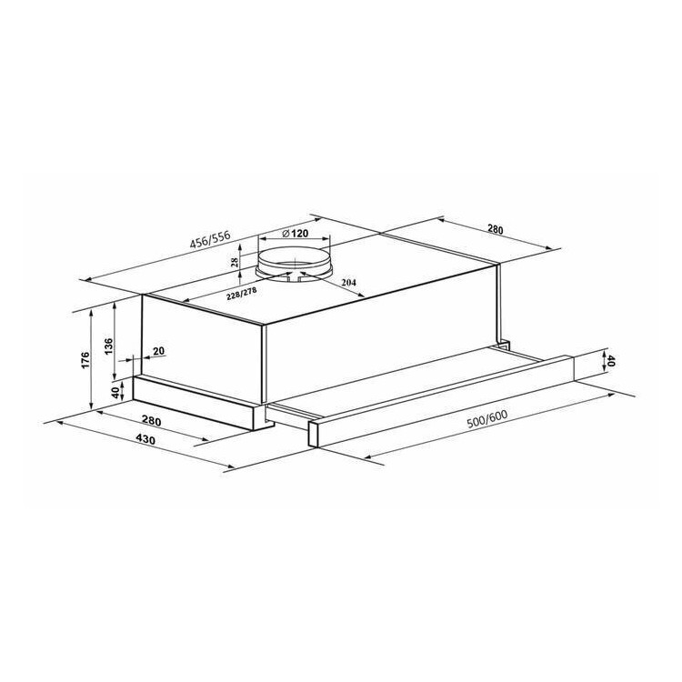 Вытяжка имеет форму встраиваемого устройства, что позволяет ей полностью скрываться в кухонном шкафу.