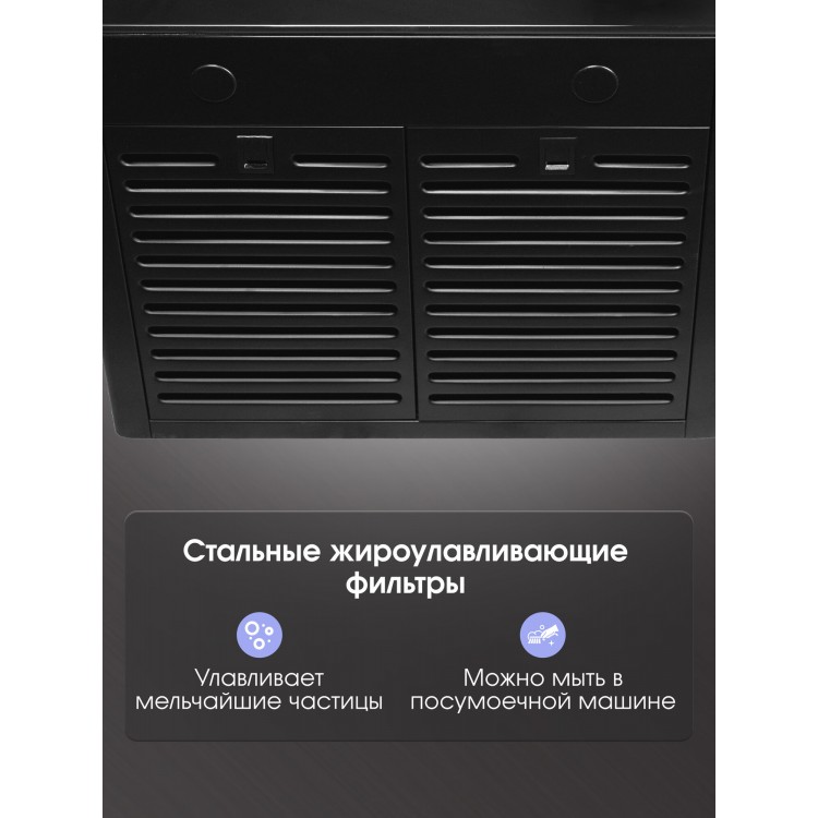 Zigmund & Shtain K 009.4 B оснащена жировым фильтром, который легко снимается и моется. Он эффективно задерживает частицы жира, предотвращая их попадание на внутренние поверхности вытяжки и мебели.
