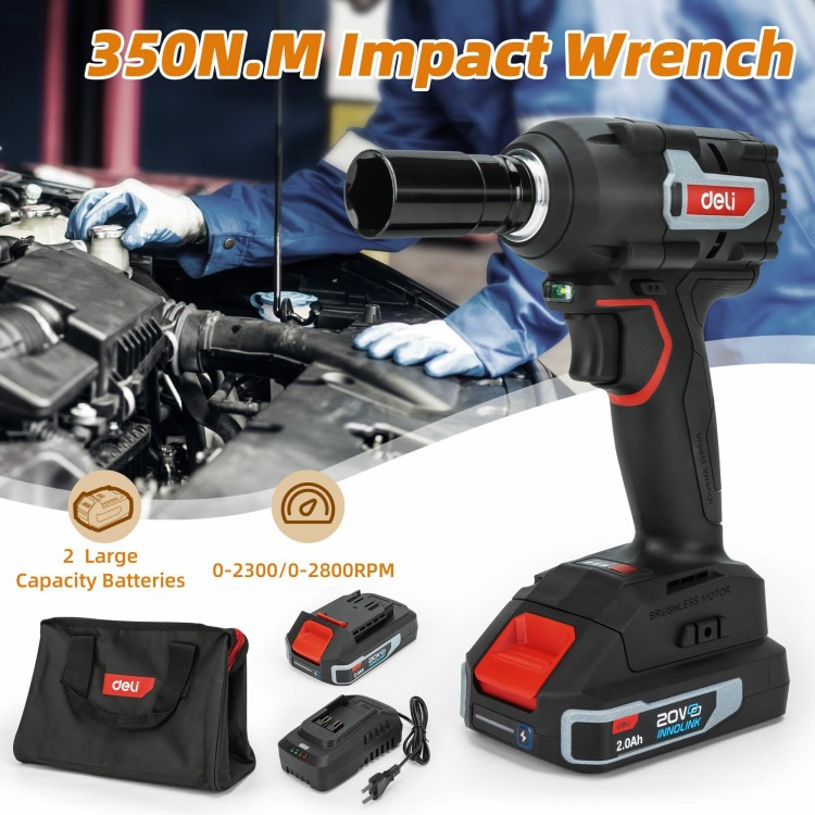 | Название | Гайковерт ударный аккумуляторный 350Нм Deli DE-BS20-1D2 (2АКБ, 20Вх2Ач + ЗУ, 0-2800об/мин, 0-3600уд/мин, сумка) |