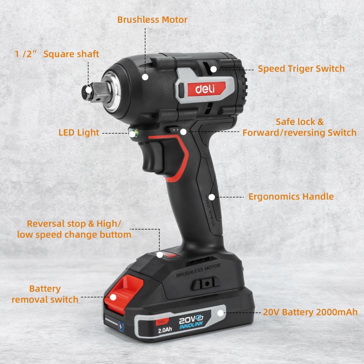 Ищете надёжный и мощный гайковёрт для профессиональных задач? Тогда модель Deli DE-BS20-1D2 от бренда Deli — это то, что вам нужно!