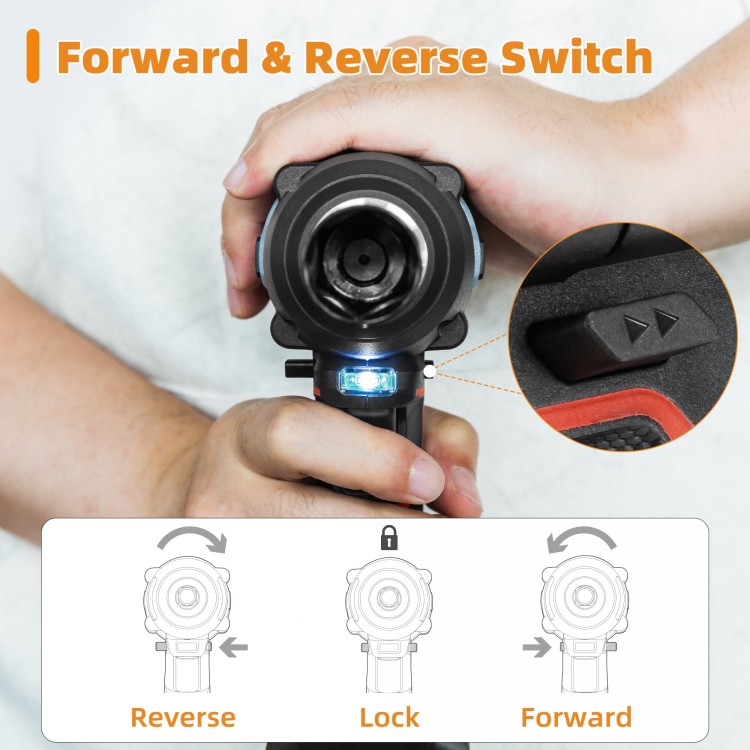 * Функции реверса, подсветки и бесщёточного двигателя делают работу с инструментом удобной и комфортной.