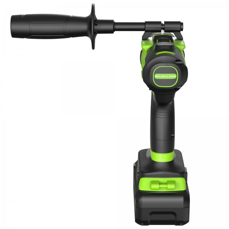 Блокировка от случайного включения и подсветка обеспечивают безопасность и удобство работы. В комплекте идёт один аккумулятор на 24 В и зарядное устройство. Бесщёточный двигатель гарантирует долгий срок службы инструмента.