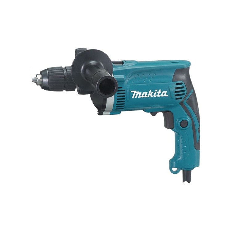 Ну что сказать про первое впечатление - вещь, как и остальные инструменты этой фирмы. Сочетание эргономики и качественного пластика, плавный старт и мощность - 700 Вт хватает для дрели такого класса за глаза, не шумная. Перед покупкой начитался вышеупомянутых отзывов и первым делом решил обкатать на кирпиче и бетоне.Кирпич сверлом Зубр (далеко не новое) на 8 мм - 12 секунд на глубину 10 см.В бетоне, правда, завязла - время ушло почти в два раза больше. Зато сверлом на 4 мм - 9 секунд. Собственно, бетон попробовал сверлить исключительно ради интереса, для этого есть перфоратор.И кирпич и бетон - еще советского производства, между прочим... Железо не пробовал, но я и работаю с ним очень редко.Из-за металлического корпуса редуктора развесовка слегка смещена вперед, но к этому быстро привыкаешь. Не тяжелая - 2 кг всего, руки не оттягивает. Вывод: читайте инструкцию, где ясно сказано что при сверлении с ударом сильно давить на дрель не нужно - и инструмент испортите быстро и время потратите больше.Из мелких недостатков - запах (пластика или смазки, не понятно) и явное искрение щеток, надеюсь пройдет со временем. Не хватает регулятора оборотов, но это я уже придираюсь - по макитовским меркам это бюджетный класс, хотите больше - платите соответственно. Народ еще писал, что патрон забивается со временем и трудно откручивается, но самозажимные патроны нужно периодически чистить, это не минус дрели, скорее минус конструкции патрона.Ну и еще бы дополнительную ручку сделали прорезиненную - было бы совсем хорошо...))В общем, дрель ожиданий не обманула - для дома самое то.