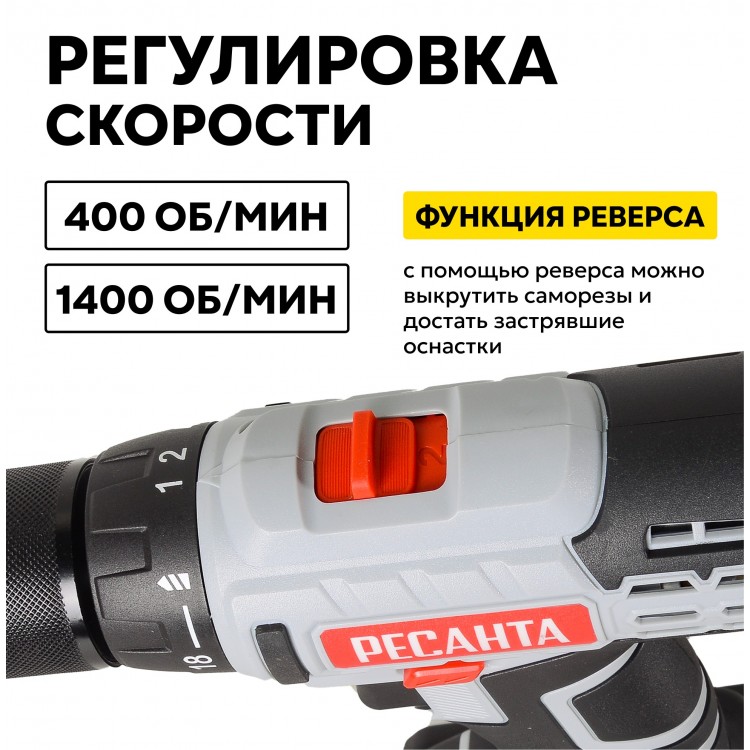 Дрель-шуруповерт Ресанта ДА-20-2ЛК (75/14/11)
