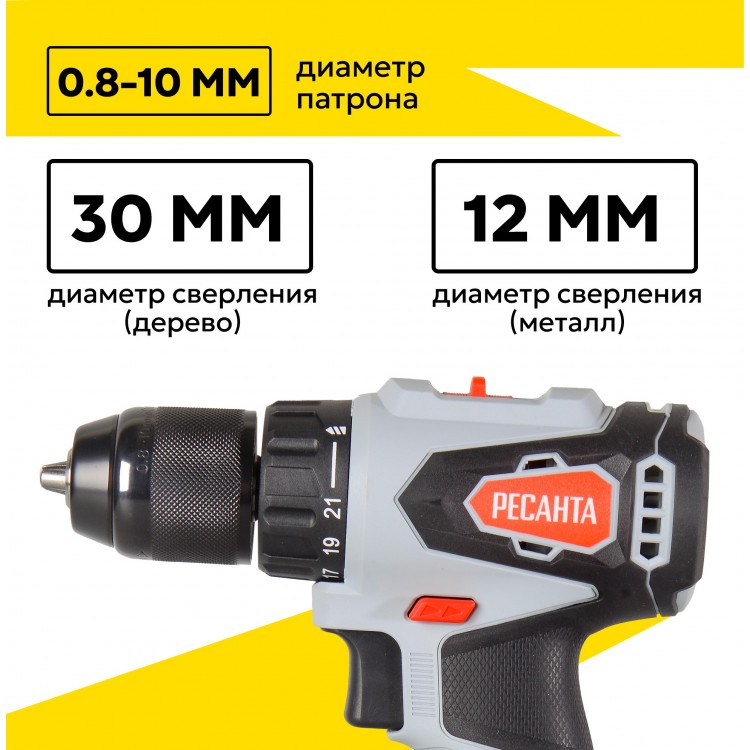 Дрель-шуруповерт Ресанта ДА-20-2ЛК-Б (75/14/10)