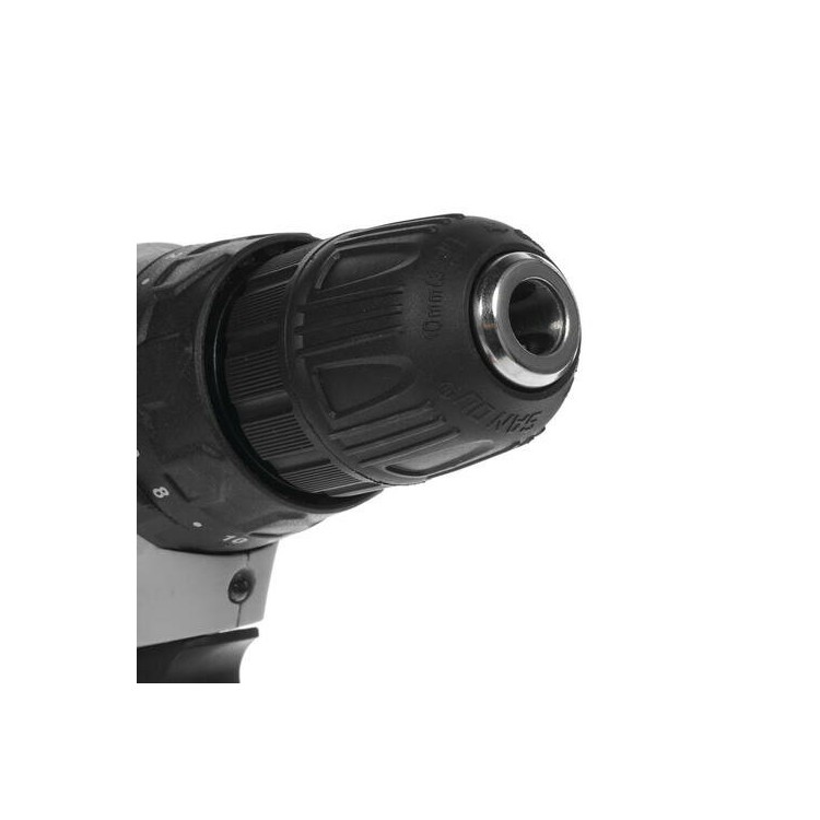 В комплекте два аккумулятора, быстрозажимной патрон, регулировка частоты вращения и блокировка шпинделя
