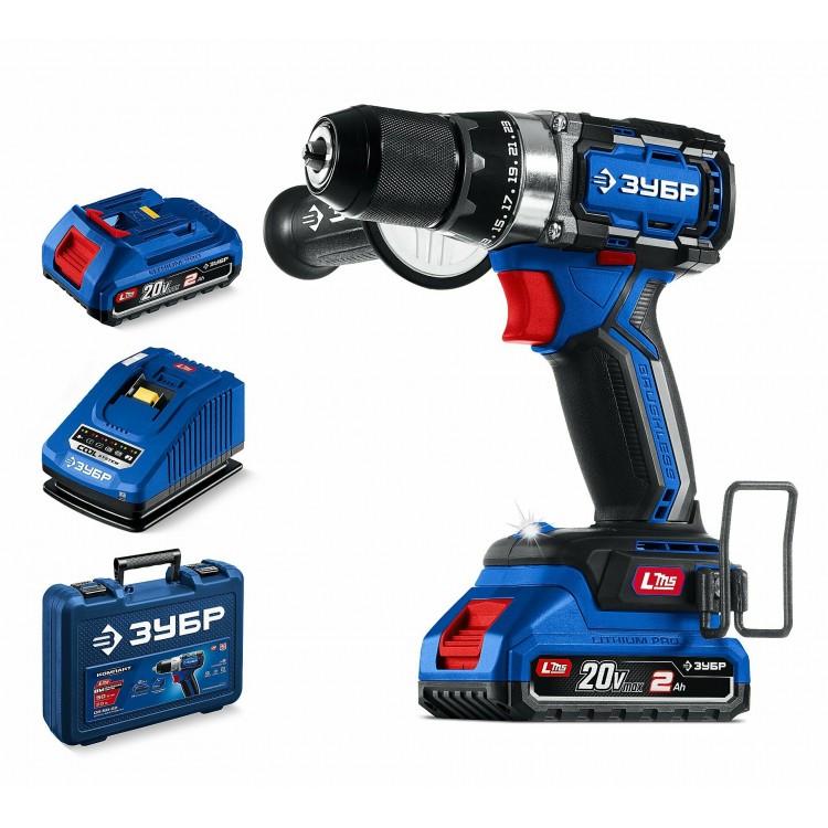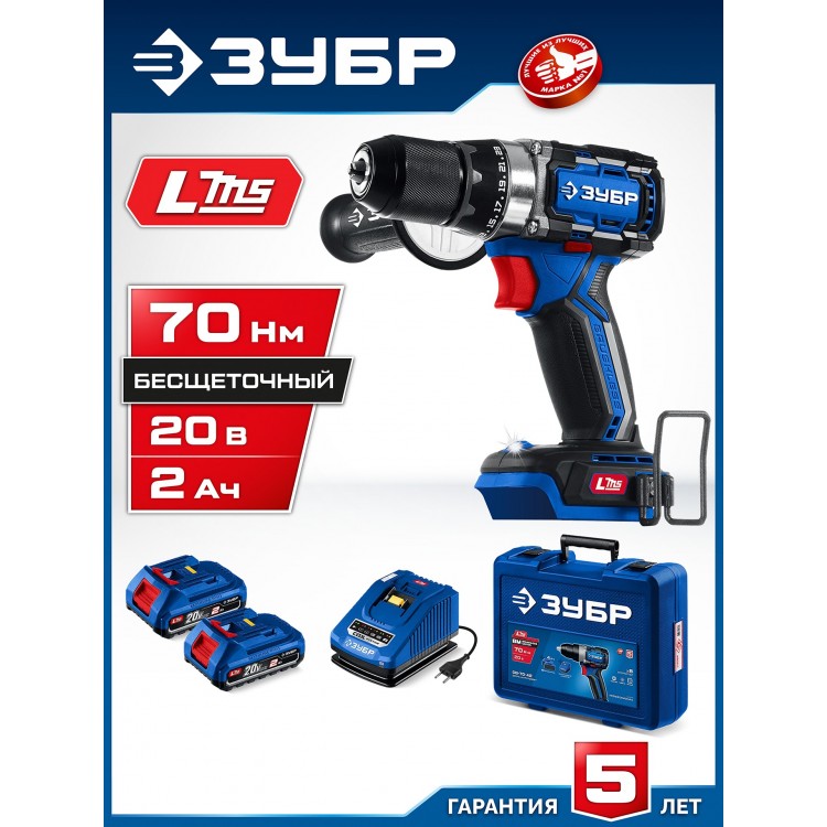 | Название | ЗУБР 20 В, 70 Н·м, 2 АКБ LMS (2 А·ч), бесщеточная дрель-шуруповерт, кейс, Профессионал (DB-70-22) |